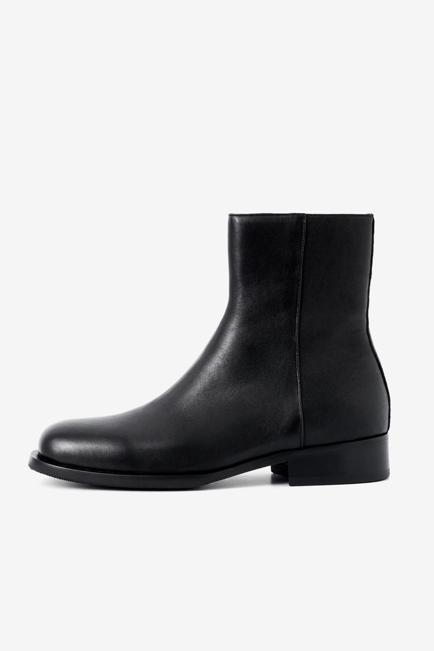 Designed with a minimal approach, this boot forgoes heavy zipper details in favor of a soft, textured fabric that creates a clean yet elevated look. They feature a sleek toe shape and an elegant vamp line, creating a refined and attractive silhouette. They are crafted from calfskin sourced from INCAS, a leather known for developing a natural, sophisticated shine over time.